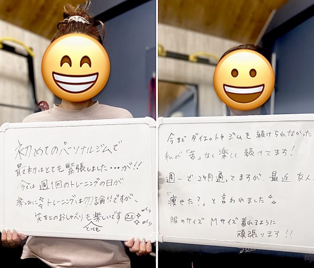 今は24時間ジムに通いながら月に1回程度パーソナルを受けて、ジムでのトレーニングのコツや日常生活で気を付ける点などのアドバイスをしてもらっていますが、いい感じにキープすることが出来ています。